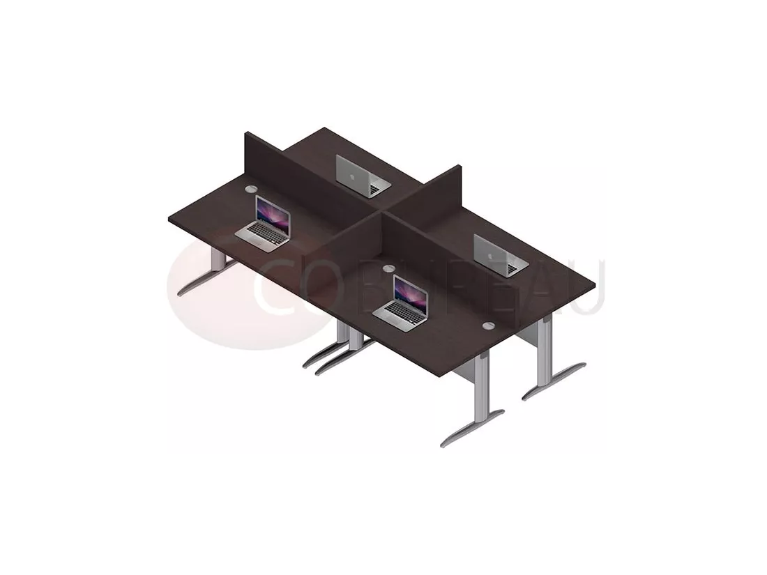 Composé de 4 postes identiques en largeur 120 cm, assemblés face à face.