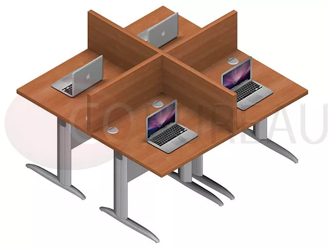 Marguerite Composé de 4 postes identiques en largeur 80 cm, Plateaux mélaminés antireflets épaisseur 30 mm.
