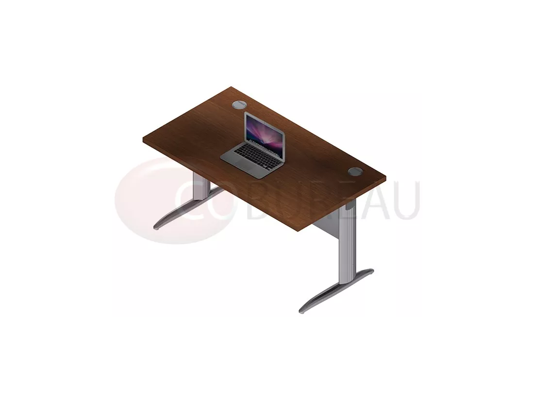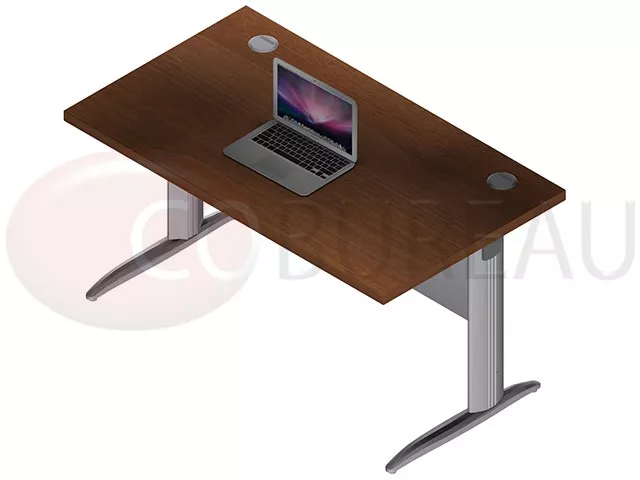 Passage des câbles intégré dans le bureau : par le pied (carter amovible de l'intérieur).