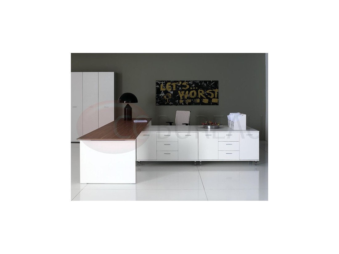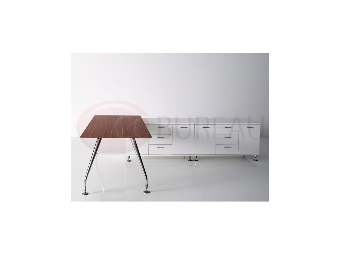 Plateaux de travail en aggloméré bois ép. 20mm, stratifié haute résistance 10/10 disponibles en 98 coloris, chants en multiplis biseauté à 45°, ou en verre trempé retro-laqué en 3 coloris ép. 10mm.