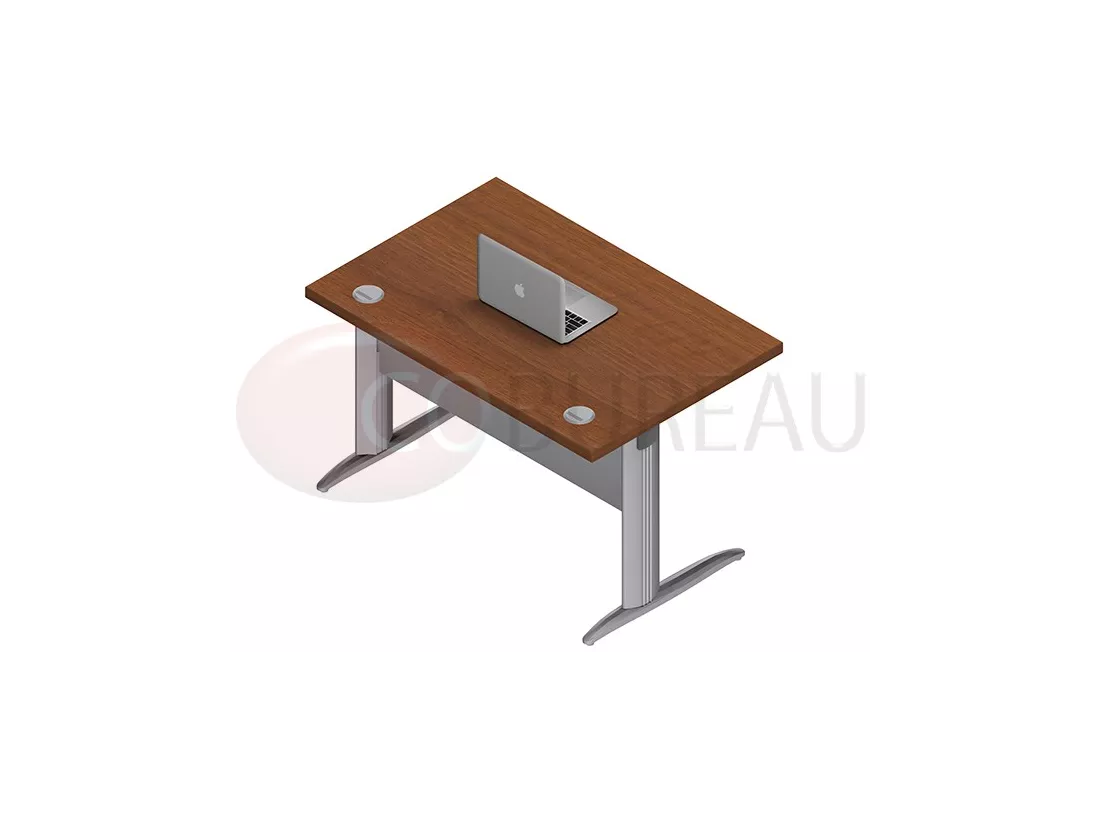 Passage des câbles intégré dans le bureau : par le pied (carter amovible de l'intérieur).