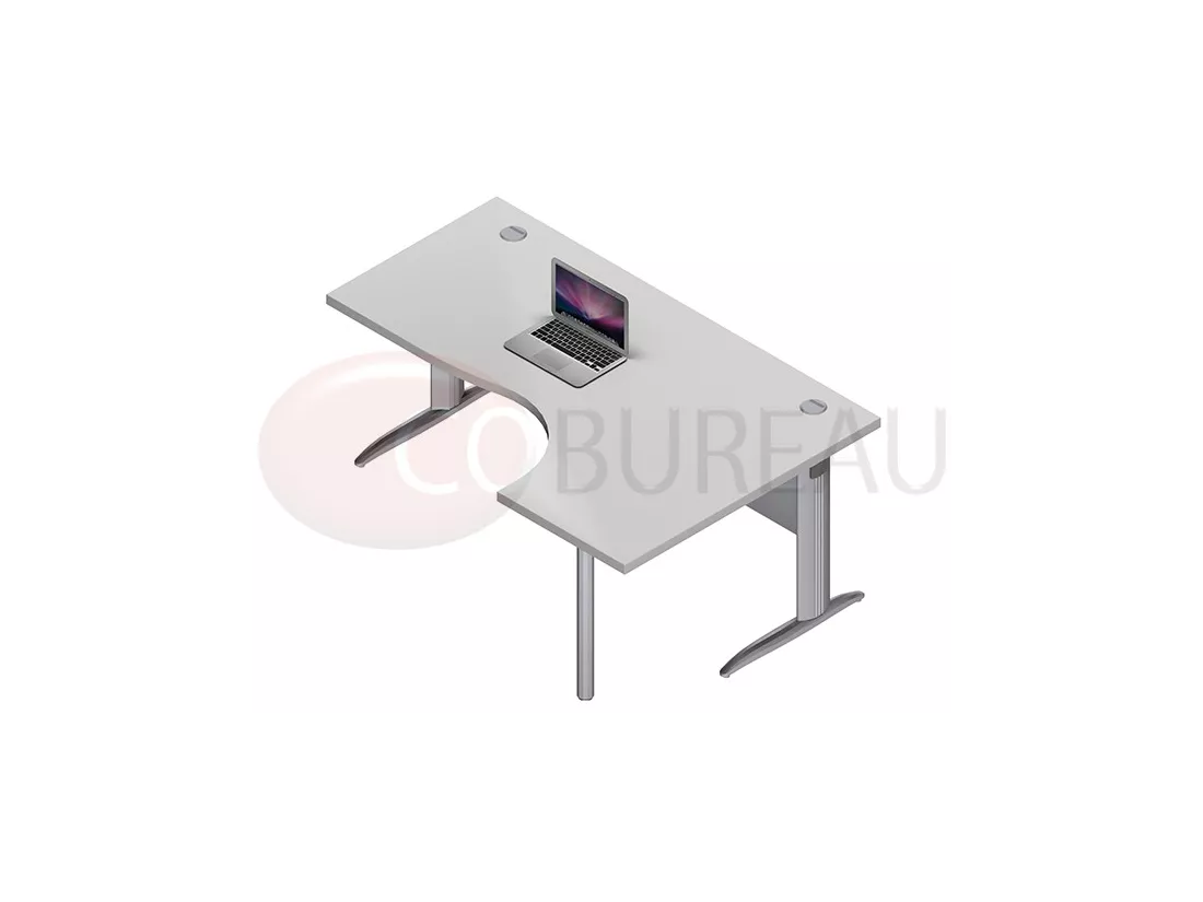 Surface de travail ergonomique. Intègre les espaces bureau, informatique et retour. Piétement " L" métal aluminium.
