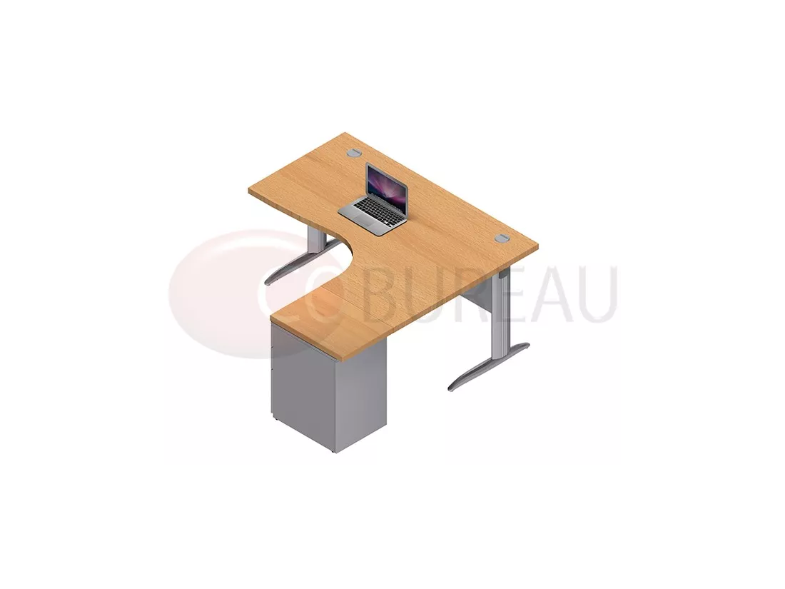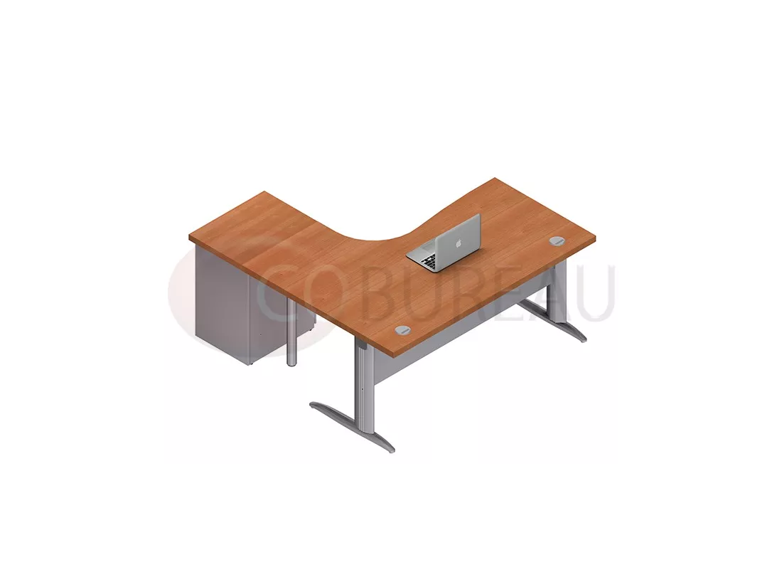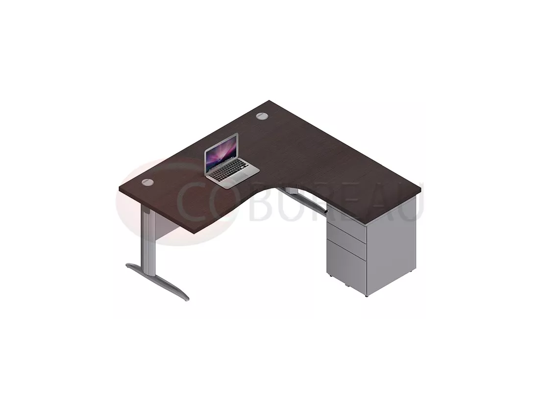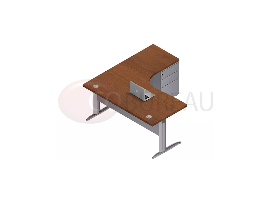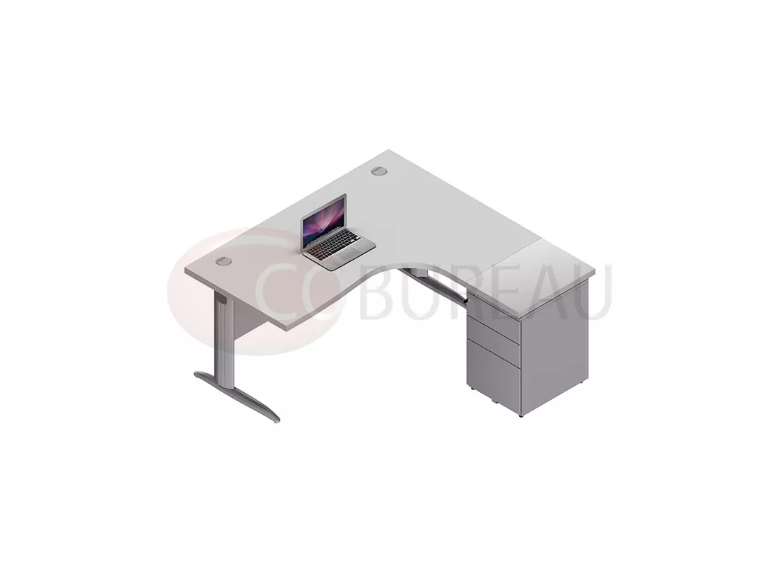 Surface de travail ergonomique. Intègre les espaces bureau, informatique et retour. Piétement " L" métal aluminium.