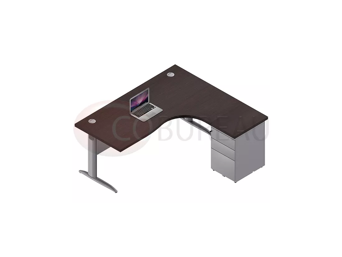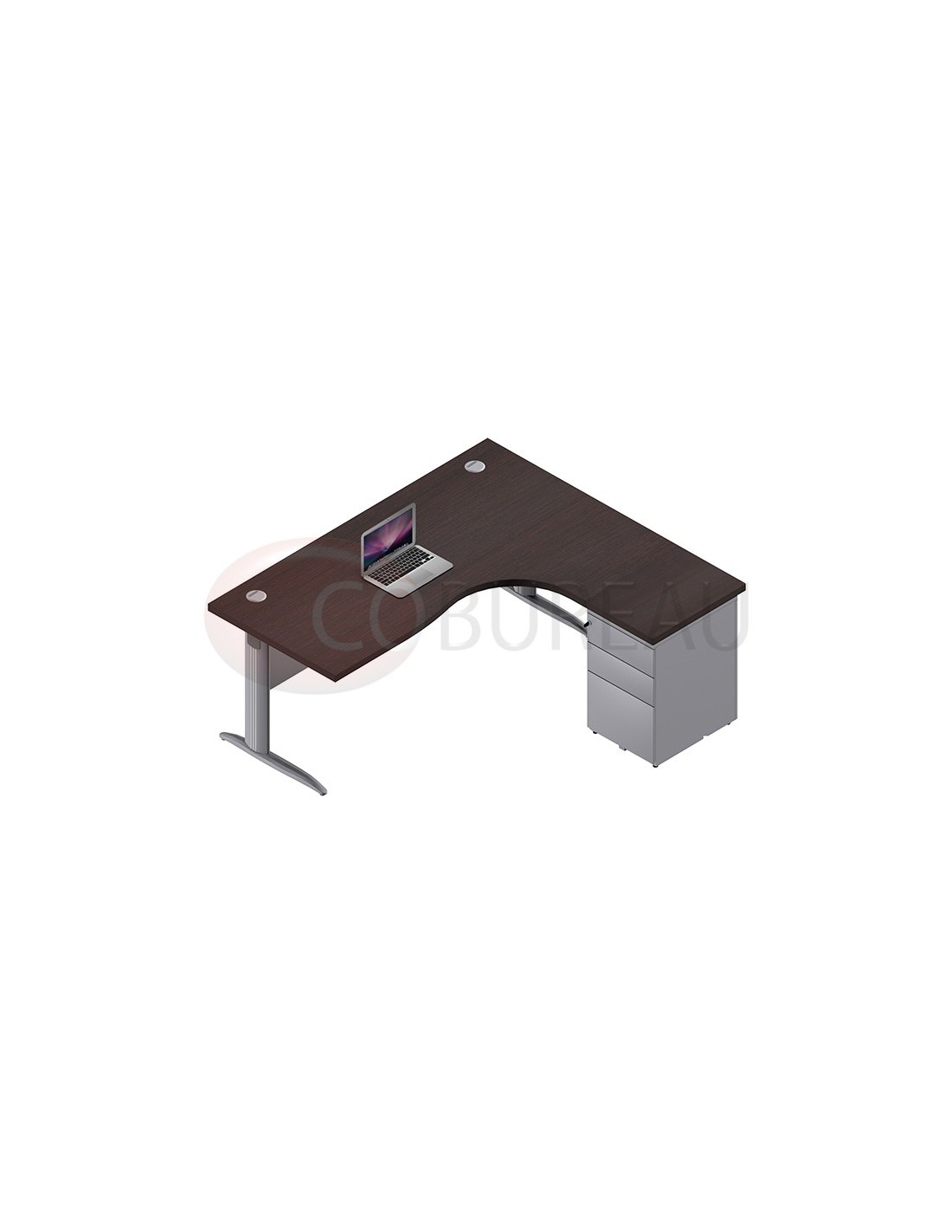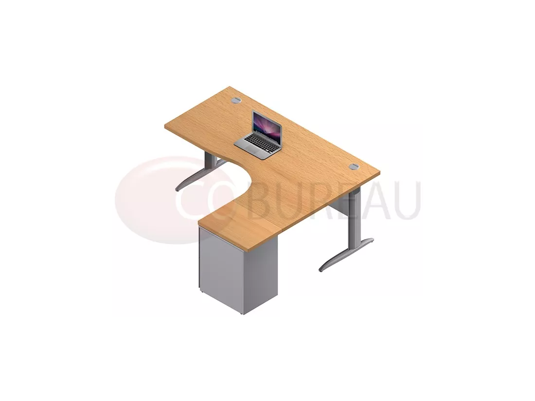 Grande liberté de mouvement des jambes sous le bureau grâce aux pieds de forme décentrée.