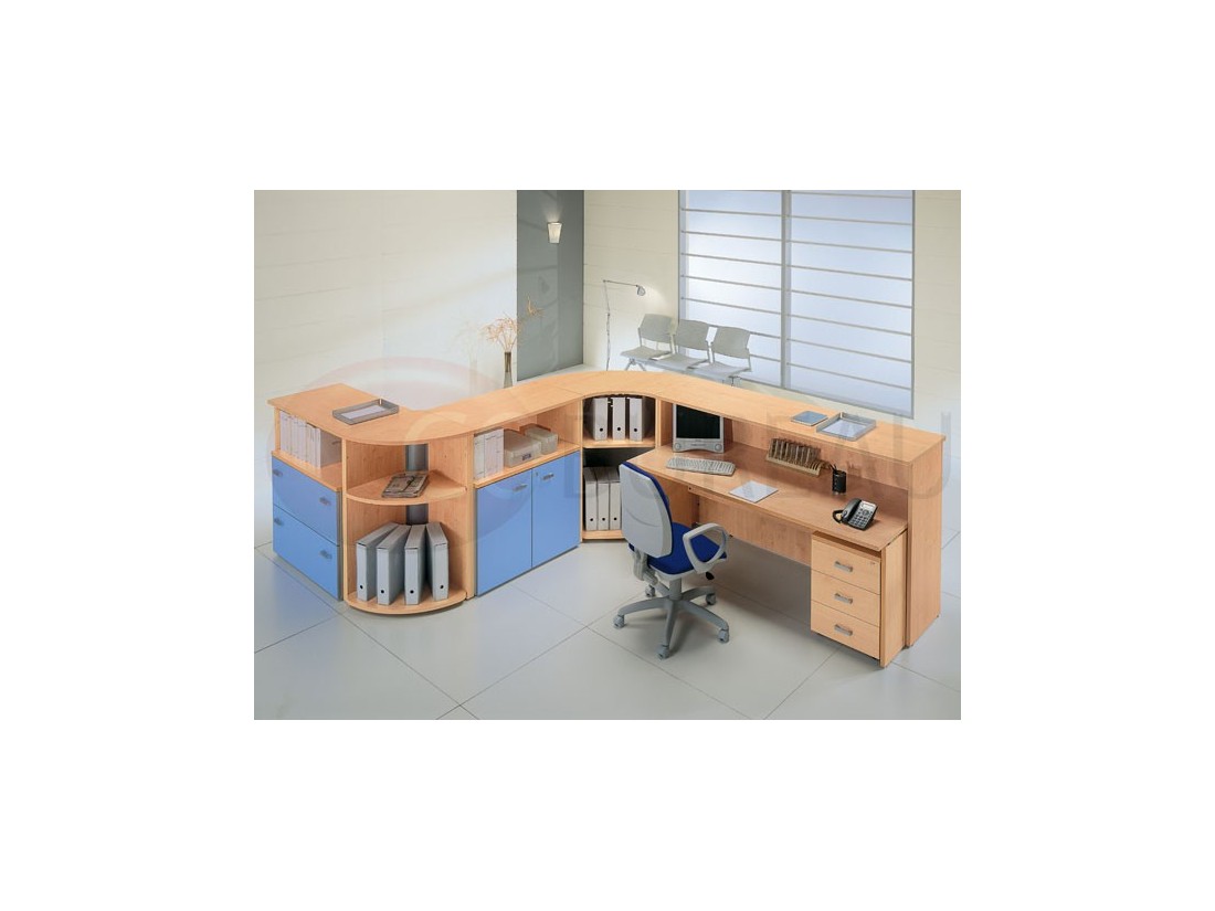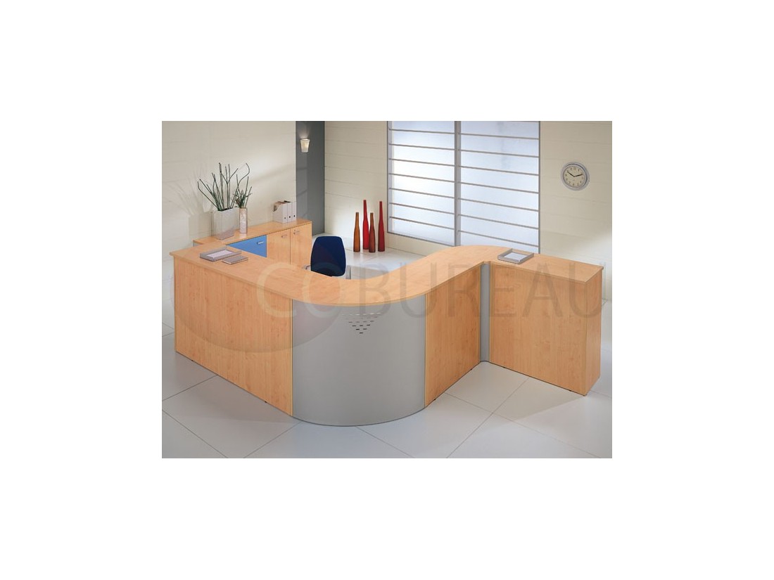Comptoir d'accueil droite Kamos H 109 x L 125 x P 85 cm, équipés d'une banque accueil L 125 cm avec bureau droit 120 cm.