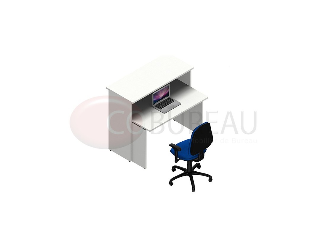 Comptoir d'accueil droite Kamos H 109 x L 125 x P 85 cm, équipés d'une banque accueil L 125 cm avec bureau droit 120 cm.
